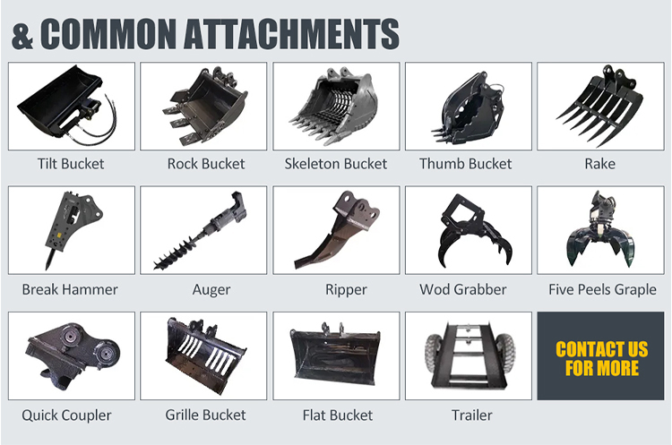 Su verdadero poder reside en los accesorios. Desde un cucharón estándar hasta una tenaza hidráulica, un martillo o una barrena, el enganche rápido le permite cambiar de herramienta en minutos. Una sola máquina, para una docena de trabajos diferentes: excavar, levantar, romper, perforar. Es la multiherramienta definitiva para su obra.Arréglelo con una caja de herramientas básica